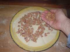 Mettere del legumi secchi sul fondo della crostata e cuocere a 190 gradi per 25-30 minuti circa