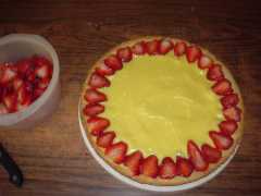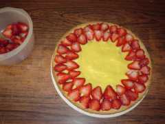 ...e cosi via sino a completare la farcitura con una fragola intera al centro della crostata