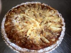 Sistemare le mele a raggiera, cospargere di zucchero, cospargere con i pinoli e cuocere a 200°C. per 30-35 minuti.