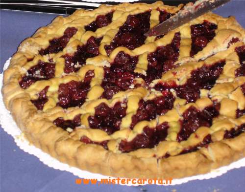Ingredienti: pasta frolla - marmellata di visciole - visciole sciroppate - zucchero a velo.