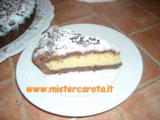 Per la festa del papà, 19 marzo, ho fatto per mio marito questa crostata con pasta frolla al cioccolato, ripiena di crema pasticcera, veramente squisita!