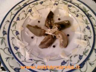Ingredienti per 4 persone: 4 o 5 carciofi - 2 cucchaini di pepe rosa in salamoia - olio extravergine d'oliva - scaglie di grana a piacere.