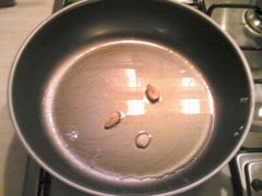 In una padella antiaderente, scaldate l'olio e fate soffriggere l'aglio per qualche minuto,