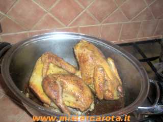 Ingredienti per persone: una faraona da 1 kg o 1 kg e 200 gr - rosmarino - timo - salvia - maggiorana - 3 spicchi d'aglio - peperoncino - poco pepe - sale - olio q.b.