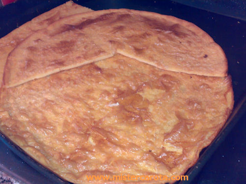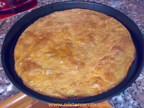 Con un mestolo versate il composto nella teglia fino a uno spessore di 5 mm, versateci sopra un filo d'olio di quello avanzato e una macinata di pepe fresco se piace. Cuocete in forno fino a che non raggiunga un bel colore come in foto, servitela calda. Continuate fino a terminare il composto.