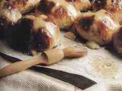 Toglierli dal forno, fare uno sciroppo con un po' di zucchero in un po' di acqua, bollire e spennellare i buns.