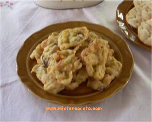 Queste frittelle sono un po' diverse dalle prime perché la farina è metà 00, metà di ceci, invece della birra c'è il vino bianco.
