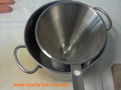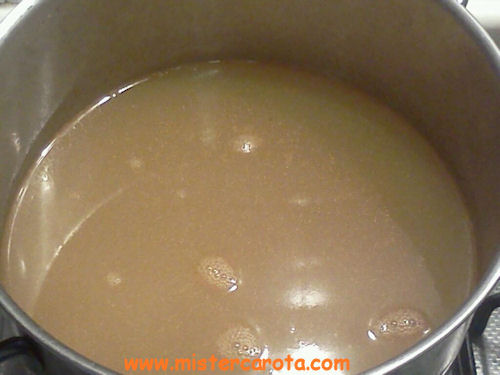 Togliere dal fuoco, far riposare per 15 minuti poi filtrare e far raffreddare velocemente in abbattitore, se lo si possiede altrimenti in frigo.