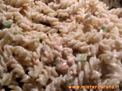 ingredienti: 250 gr di philadelphia,200 gr di salmone,un porro,sale,olio evo,300 gr di fusilli