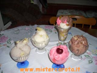 Ingredienti gelato di cacao: 50 gr di cacao amaro - 200 gr di zucchero - 250 gr di panna - 300 gr di latte - 1 bustina di vanillina - 2 cucchiai di liquore crema cacao.
