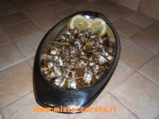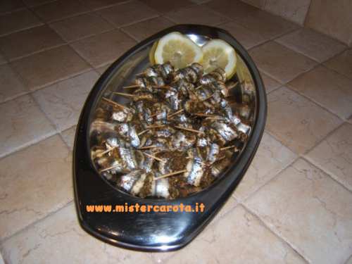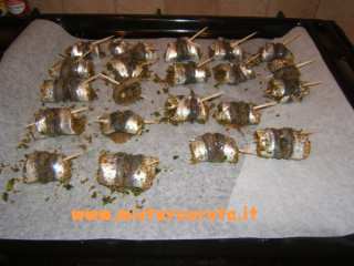 Ingredienti: 400 gr di alici - 2 cucchiai scarsi di parmigiano grattugiato - buccia di 1/2 limone non trattato - 100 gr di pangrattato 20 gr di pinoli - 1 manciata di prezzemolo tritato - 2 spicchi d'aglio - sale q.b. - 3 cucchiai di olio extravergine d'oliva.