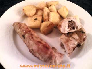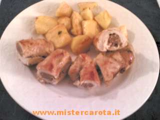 Togliete gli involtini dal forno e tagliateli a pezzi di circa 3-4 cm e accompagnateli con patate al forno e insalate fresche.