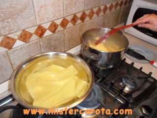 Ingredienti per 6 persone: 700 gr di fogli di pasta per lasagne - 5 grandi melanzane pelate ed affettate - 150 gr di nduja spellata e spezzettata - 150 gr di gruviera grattugiato - 750 ml di latte intero - 100 ml di panna - 3 cucchiai colmi di farina - 100 gr di burro - 1 cucchiaino di noce moscata grattugiata - parmigiano grattugiato, acqua e sale quanto basta - un'idea di olio extravergine d'oliva.