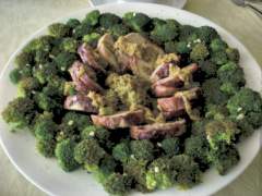 Sistemare le fette di lonza al centro del piatto contornata dai broccoli.