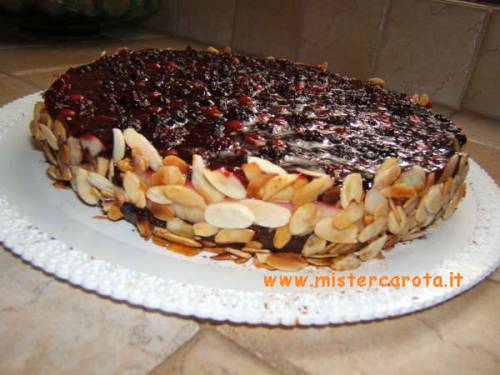 Ho versato la gelatina ai frutti di bosco ancora calda sulla torta e ho rimesso in frigo a solidificare.