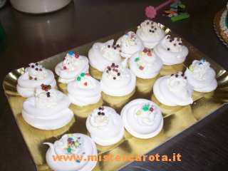 Ingredienti: albumi in quantità a piacere - zucchero il doppio del peso degli albumi (ad es. se avete un paio di albumi che pesano 70 gr peserete 140 di zucchero) - un pizzico di sale - cioccolato fondente - panna montata - granelle e confettini colorati.