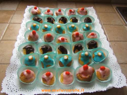 Ingredienti: 35 bignè - crema pasticcera - crema al caffè - crema alle fragole.