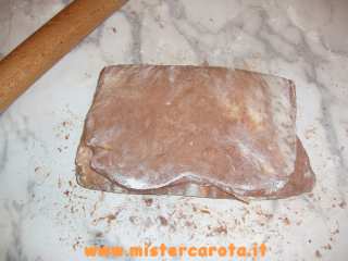 L'ho stesa nella tavola infarinata e ne ho fatto un rettangolo, dopodiché ho proceduto con il metodo classico dei piegamenti per la