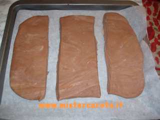 Dopo aver eseguito tutte le fasi con i vari riposi in frigorifero, l'ho stesa, ho formato un rettangolo dell'altezza di 1 cm circa e ho tagliato la pasta in 3 pezzi uguali (più o meno).