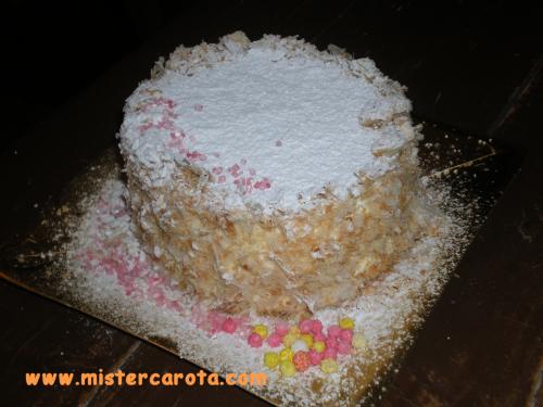 Sbriciolare i ritagli freddi e appiccicarli tutt'intorno alla torta.