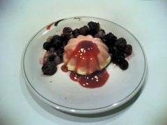 Guarnire con frutti di bosco e due cucchiaini di salsa di lamponi.