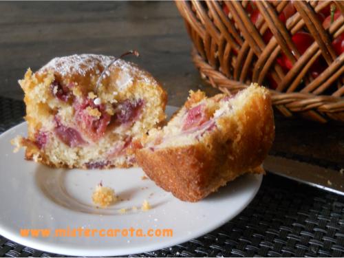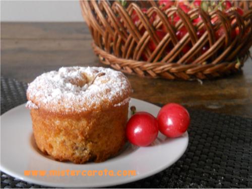 Ingredienti: 120 gr di farina - 80 gr di zucchero - 100 gr di ricotta - 70 ml di latte - 1 uovo - 1 cucchiaio di lievito per dolci - 30 ml olio semi di girasole - 20 ciliegie circa.