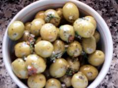 ingredienti: 500 gr di olive verdi - 1 rametto di rosmarino - 1 peperoncino rosso - 1/2 cucchiaino di maggiorana in foglie - 1 cucchiaino di origano - 1 spicchio d'aglio, olio.