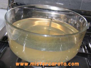 Ho preparato un brodo vegetale con 1 carota, 1 patata, 1 zucchina, fatte bollire in abbondante acqua NON salata, fino a che questa si è ridotta della metà e le verdure cotte bene.