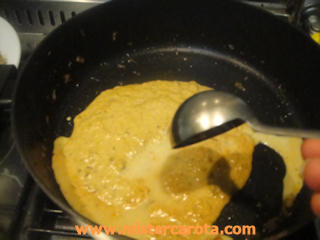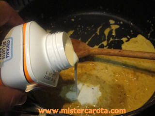Aggiungere la panna fresca, far addensare su fuoco medio, poi regolare di sale e pepe.
