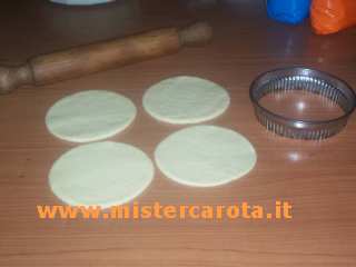 Poi tiro la sfoglia, faccio delle formine di circa 10 cm di diametro.