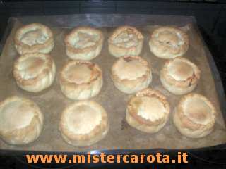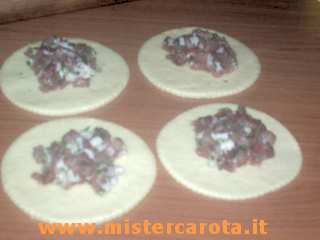 Metto su ogni formina un cucchiaio abbondante di carne.