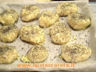 Cospargendoli poi di semi di papavero. Infornate a 170°C. per 10 minuti circa regolandovi cmq dal colore. Sfornate, fate raffreddare un p? e tagliate a metà