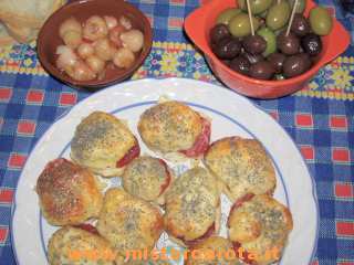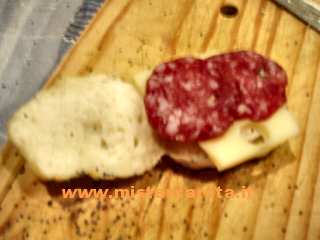 Imbottite con una fettina di salame e un pezzetto di groviera