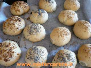 Formate dei panini e metteteli su di una teglia coperta con carta da forno a lievitare per 1 ora e 1/2 (anche 3 o 4 se usate la PM).