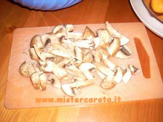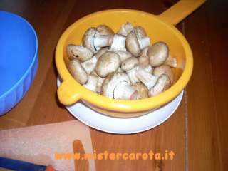 Prendere i funghi. Pulirli della terra, lavarli molto velocemente, farli asciugare