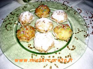 Ci sono 3 modi per decorarle: 1) spolverarle di zucchero a velo, 2) glassarle con una miscela di 2 parti di zucchero ed 1 di acqua sciolta a bagnomaria assieme a del succo di limone, 3) oppure irrorarle con il miele e cospargere in tutte e due i casi con confettini colorati (monopariglia).