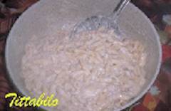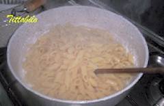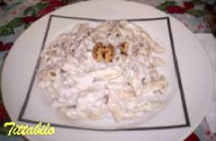 Ingredienti: 500 gr di pasta - 100 gr gherigli di noci - 450 gr ricotta fresca - sale grosso q.b. - crema di latte (panna)
