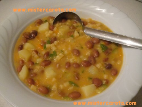 Ingredienti per 2 persone: 100 gr di pasta tipo ditali (cannolicchi, tubetti) piccoli rigati - 120 gr di zucchine - 180 gr di patate - 180 gr di fagioli già lessati e sgocciolati - 1/2 cipolla - un pezzetto di carota - 1/2 costa di sedano - un ciuffo di prezzemolo - 1 cucchiaio di passata di pomodoro - 40 gr di gambuccio di prosciutto a cubetti - olio extravergine d'oliva q.b. - sale q.b. - pecorino grattugiato q.b.