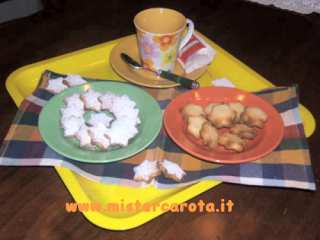 Ingredienti: 125 gr di burro a temperatura ambiente - 150 gr di zucchero - 225 gr di farina 00 - 100 gr di farina di mandorle - succo di 1 limone - un pizzico di sale - zucchero a velo.