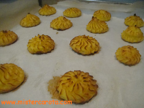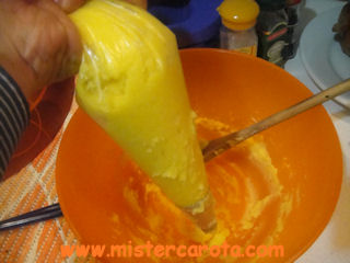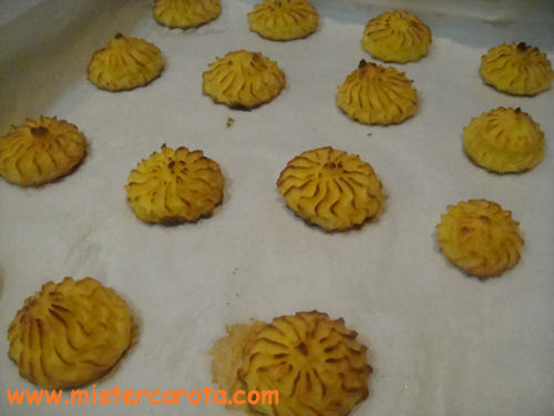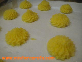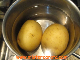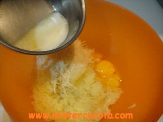 Ingredienti per 2 persone: 300 gr di patate - 2 tuorli d'uovo - 40 gr di parmigiano grattugiato - 30 gr di burro - sale.