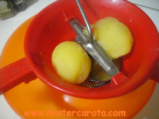 Lessare le patate, sbucciarle e passarle al setaccio o al passaverdura.