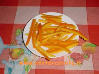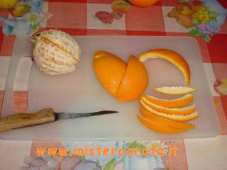Togliere la buccia di 1 arancia e tagliare a lamelle fine