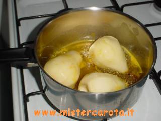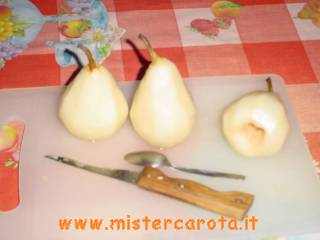 Spellare le pere, lasciando la punta, e svuotarle di sotto (mi sono aiutata con il cortello e un cucchiaino)