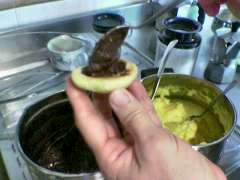 Aiutandosi con le mani formare delle palline con l'impasto e imburrare i gusci.