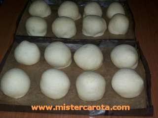 Prendere l'impasto e fare dei panini che pesano in media 60 gr. Lasciar lievitare nuovamente fino a che il volume non sia raddoppiato.