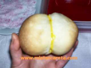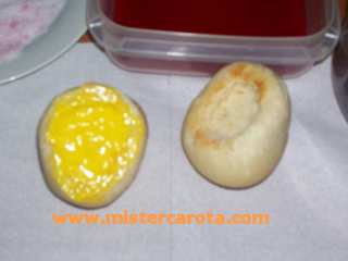 Fare un buchetto nella parte basale di ciascun panino e mettere la crema,