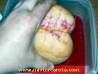 Fare una bagna con 2 parti di alchermes ed una parte di acqua e farci rotolare il dolce,