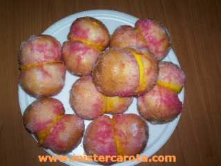 Farli raffreddare. Nel frattempo preparare una crema pasticcera con: 3 tuorli - 70 gr di zucchero semolato - 15 gr di zucchero a velo vanigliato - 20 gr di fecola di patate - 1/4 di lt di latte - zucchero vanigliato - scorza di limone