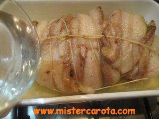 Togliere dal forno, aggiungere il vino bianco ed un goccio di acqua e infornare a 220°C per un'oretta o poco più
