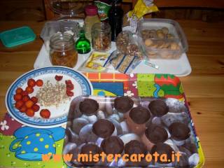 Ingredienti: cioccolato fondente e al latte - frutta secca varia (nocciole, mandorle, noci, pinoli...) - uva passa messa a macerare nel liquore mandarinetto - albicocche secche messe a macerare nel liquore all'arancia - amarene nel brandy - panna montata - ricotta - farina di cocco - sciroppo di menta - castagne